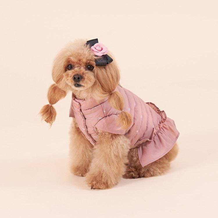 스노우플라워 패딩 원피스 핑크