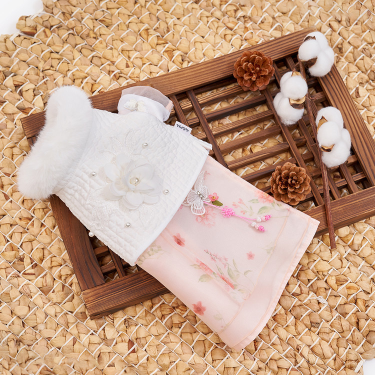화이트블루밍배자+ 수피아한복(핑크) 세트