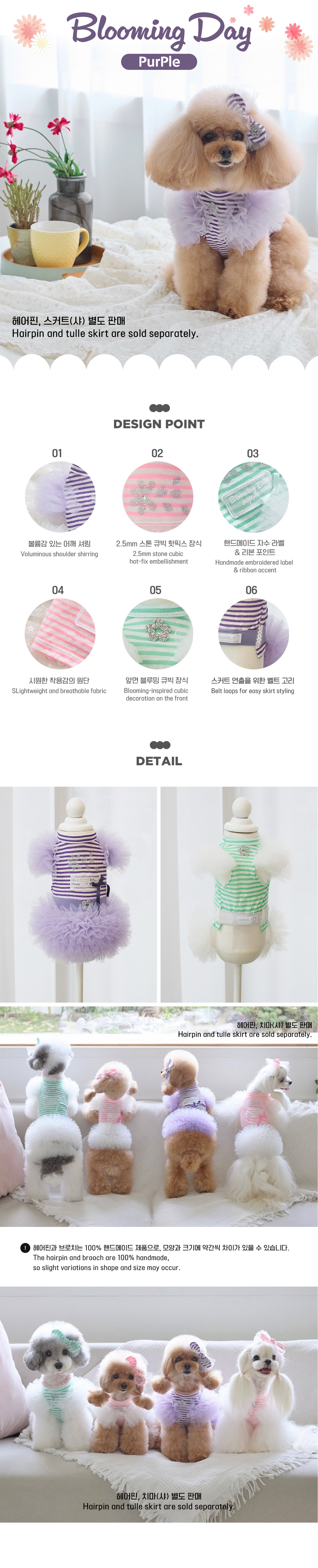 Blooming Day는 수국에서 영감을 받아 디자인된, 티셔츠와 스커트가 분리된 실용적이고 사랑스러운 의류입니다.
