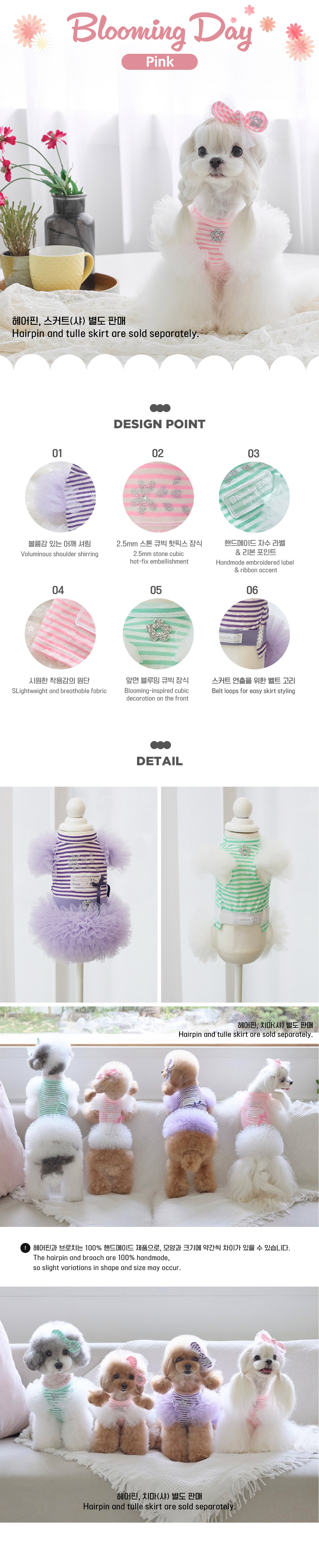 Blooming Day는 수국에서 영감을 받아 디자인된, 티셔츠와 스커트가 분리된 실용적이고 사랑스러운 의류입니다.