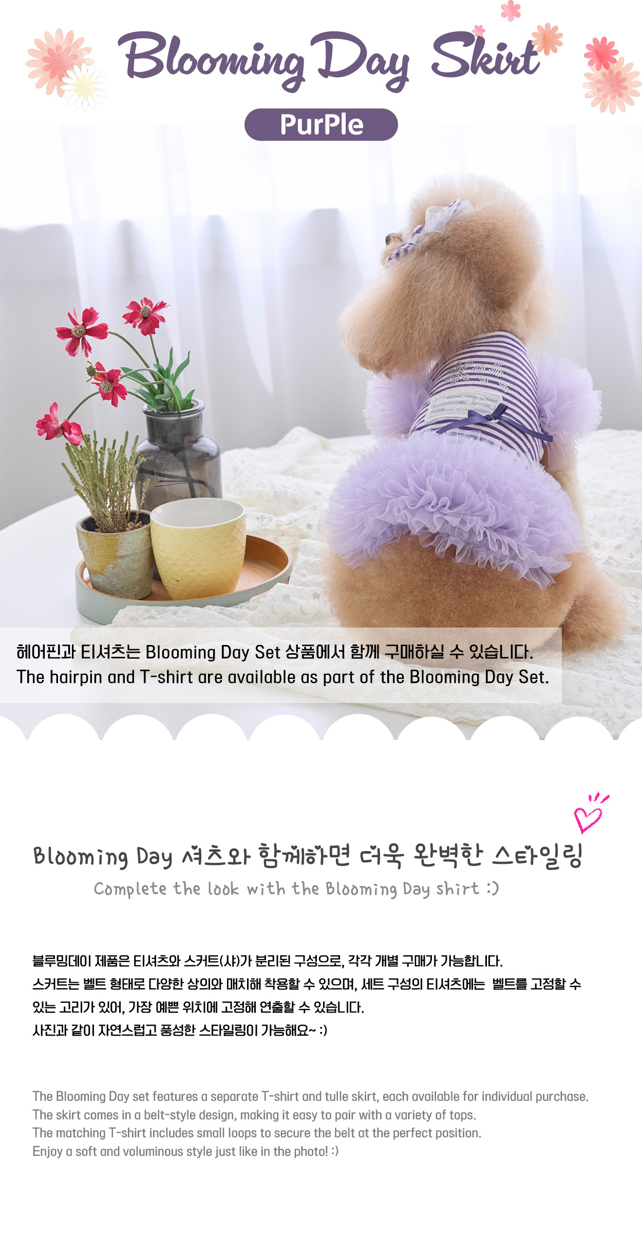Blooming Day는 수국에서 영감을 받아 디자인된, 티셔츠와 스커트가 분리된 실용적이고 사랑스러운 의류입니다.